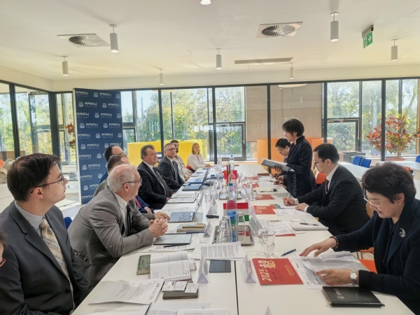 On the morning of October 20, at the University of Miskolc (ME) in Hungary, Vice President Su Haijia and the delegation held a tripartite meeting with Vice Rector Roland Szilágyi of ME, Vice President Béla Varga of Wanhua-BorsodChem, and relevant officials in charge of ME’s international cooperation. They discussed the establishment of joint international talent cultivation programs between the two universities and related mechanisms. After the meeting, leaders from all three parties jointly attended a press conference and officially announced the launch of the “2+2” joint training program in Chemical Engineering and Technology between BUCT and ME. On the afternoon of the same day, the delegation visited ME’s Centre for Higher Education and Industrial Cooperation (FIEK) and met with BUCT faculty members stationed at the Confucius Institute at ME, where they received a briefing from Director Zhao Jing.